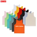 100% Cotton Singlet Mens Blank Solid Vest Men Fitness Tank Top Workout Gym Shirt Custom Logo