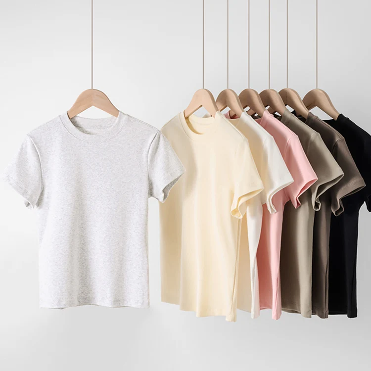220G Summer Black Plain Black Slim Fit Round O Neck Shirts Custom Women's Cotton T Shirt for Women Ladies T-Shirt