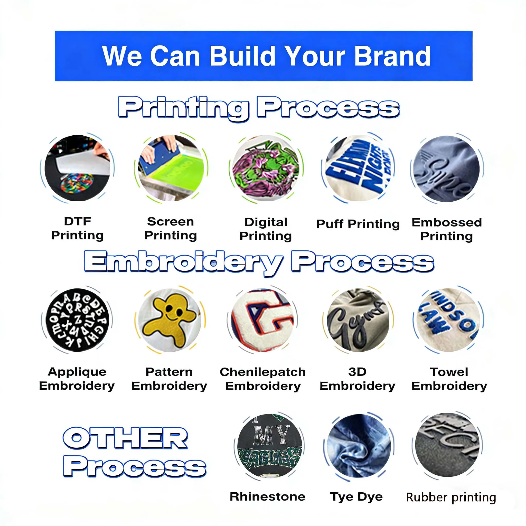 Puff Printing, Embossed, Heat-Transfer Printing, reflective printing