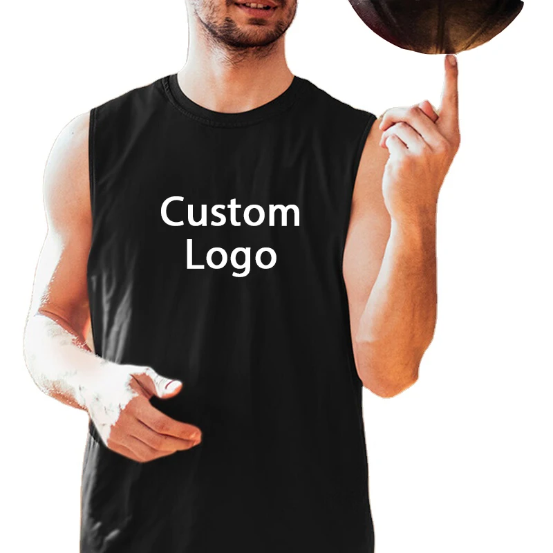 Custom Logo Cotton Running Singlet Muscle Athletic Shirts Sleeveless T Shirt Fitness Wear Gym Tank Top for Men