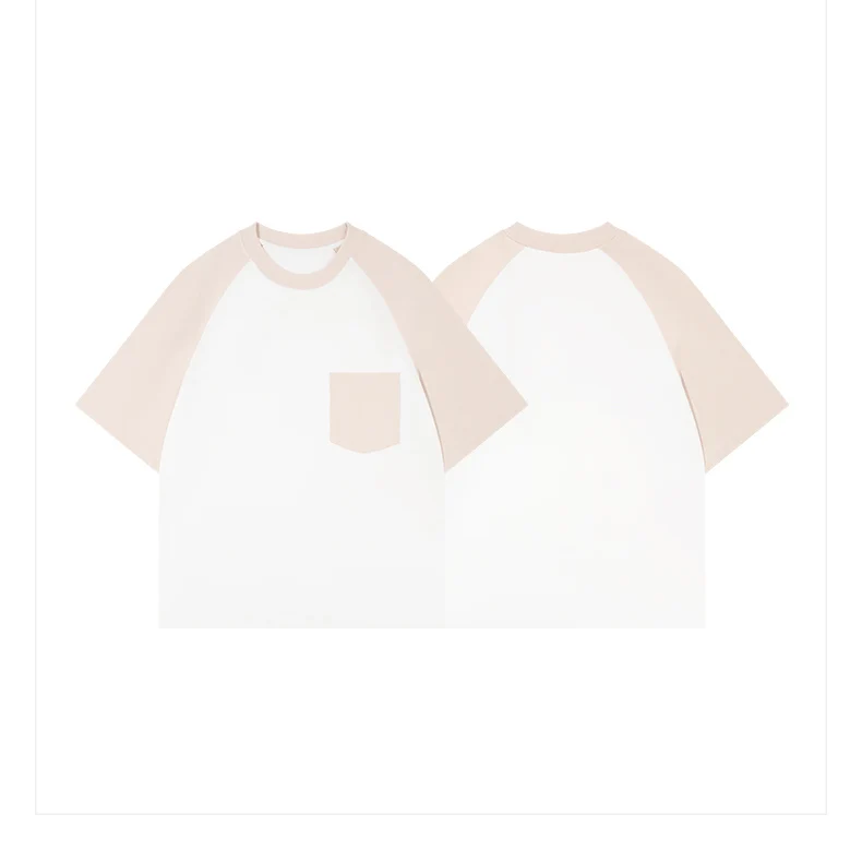 High Quality 300 Gsm Tshirt With Pocket 2025 Heavy Cotton T-shirt Two Tone Color Raglan T Shirt for Men