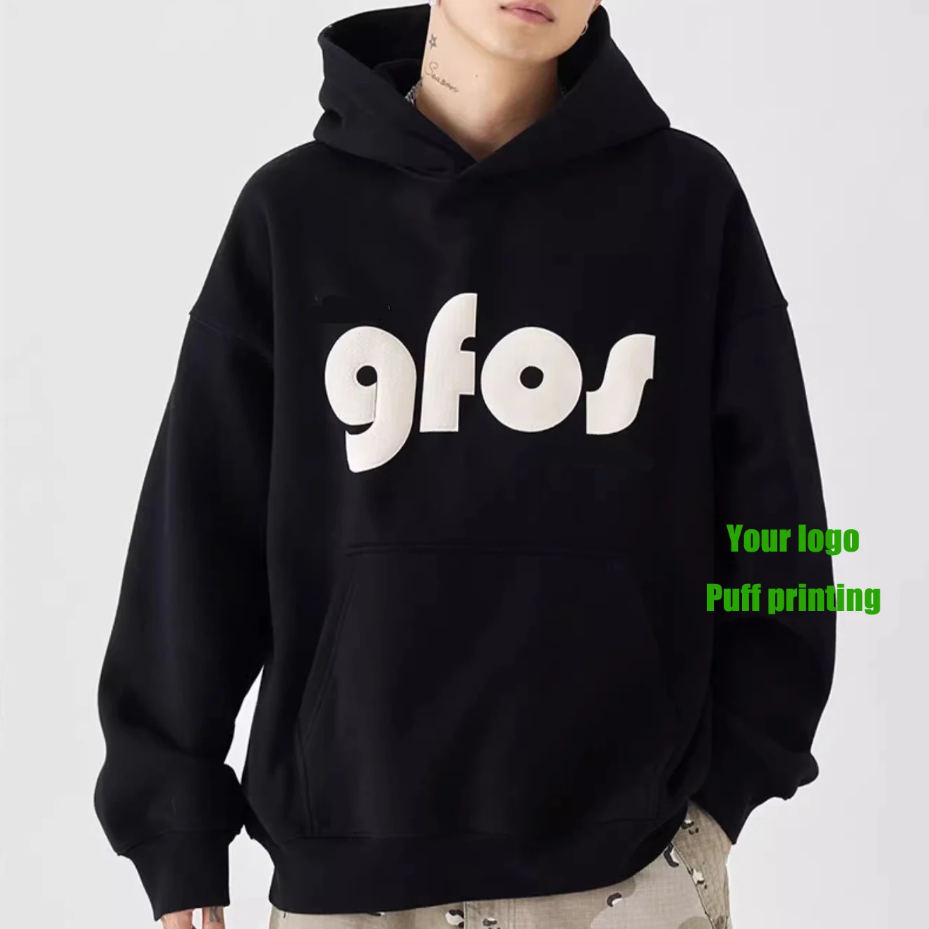 Hoodi Custom Puff Print Oversized Pullover Cotton Hoodie Men Sweatshirt Cotton Heavyweight Foam Logo Custom Graphic Hoodie